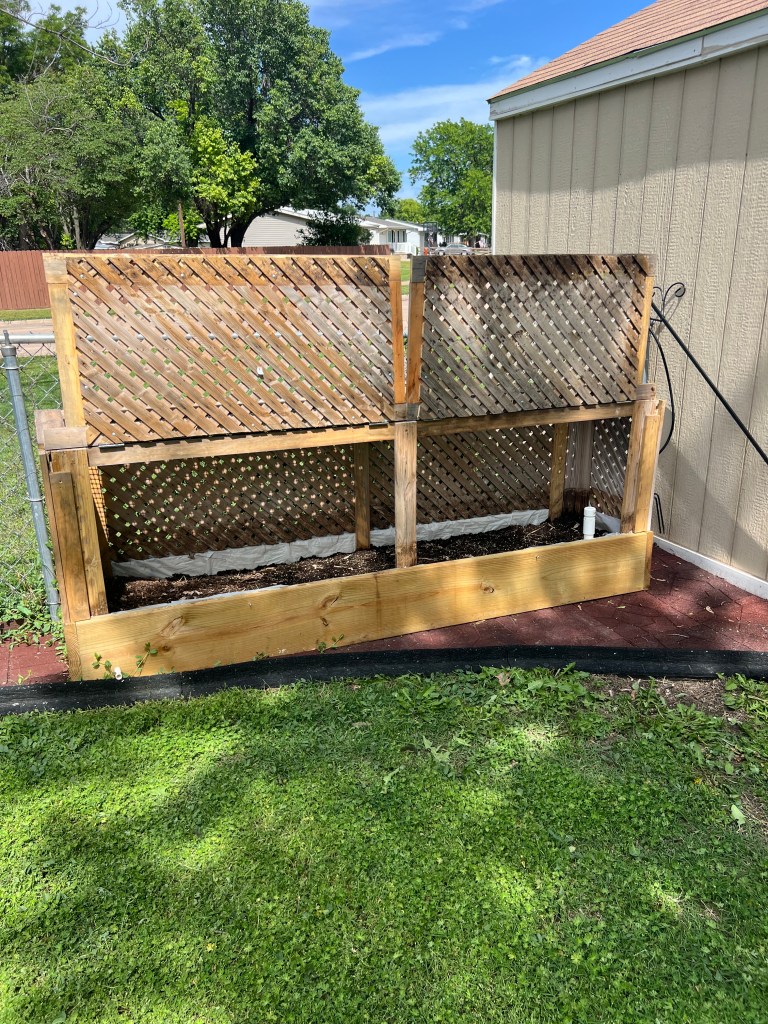 This client got tired of fighting critters for the food they are growing. This was our solution. The top has a fine mesh to allow light and pollinators in. One side opens up fully to allow for planting and harvesting.